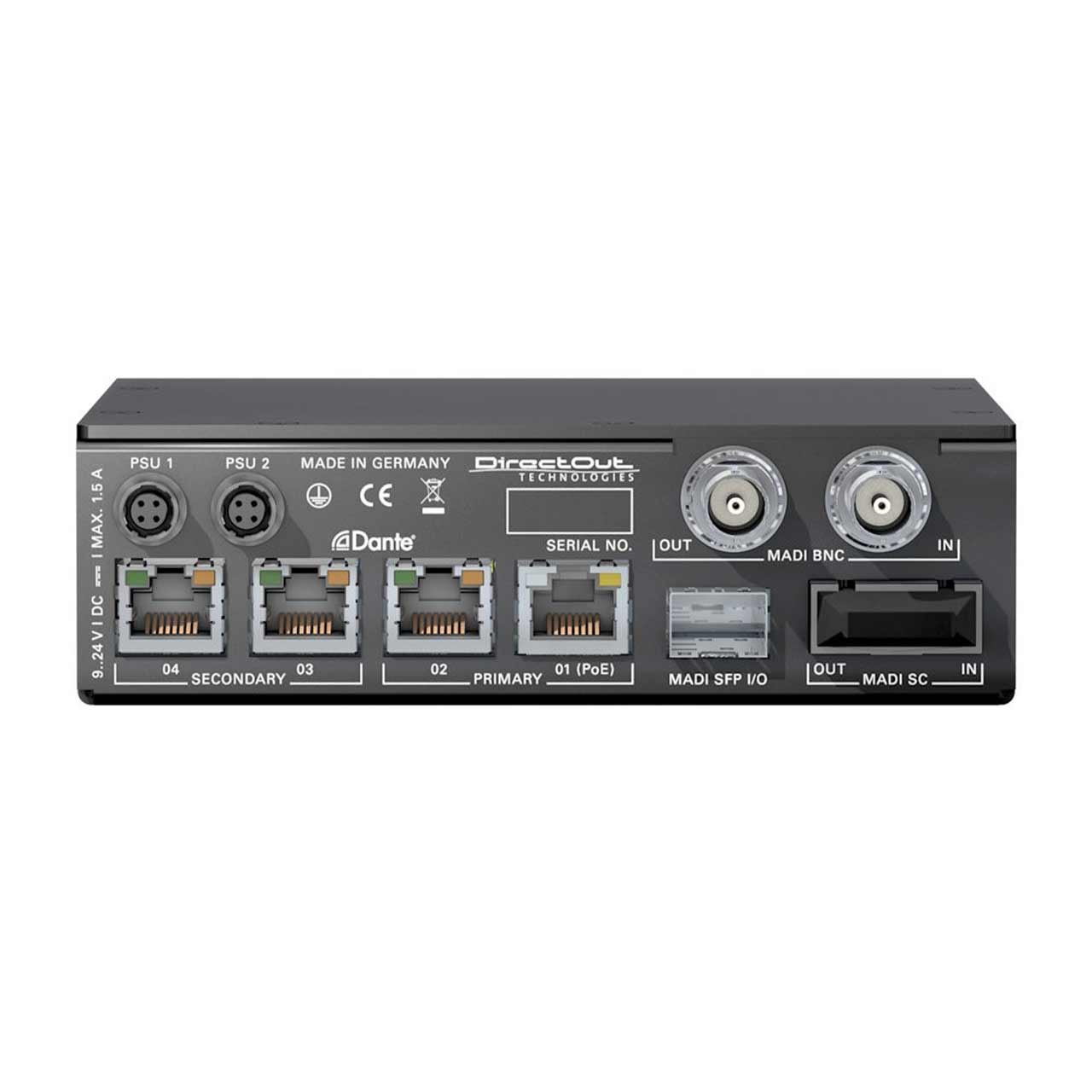 Four network ports are connected to an internal switch and give the opportunity to use Dante’s redundancy mode (Primary <> Secondary), while more EXBOX.MDs or other Dante devices can be connected in switched mode directly to increase the number of channels.