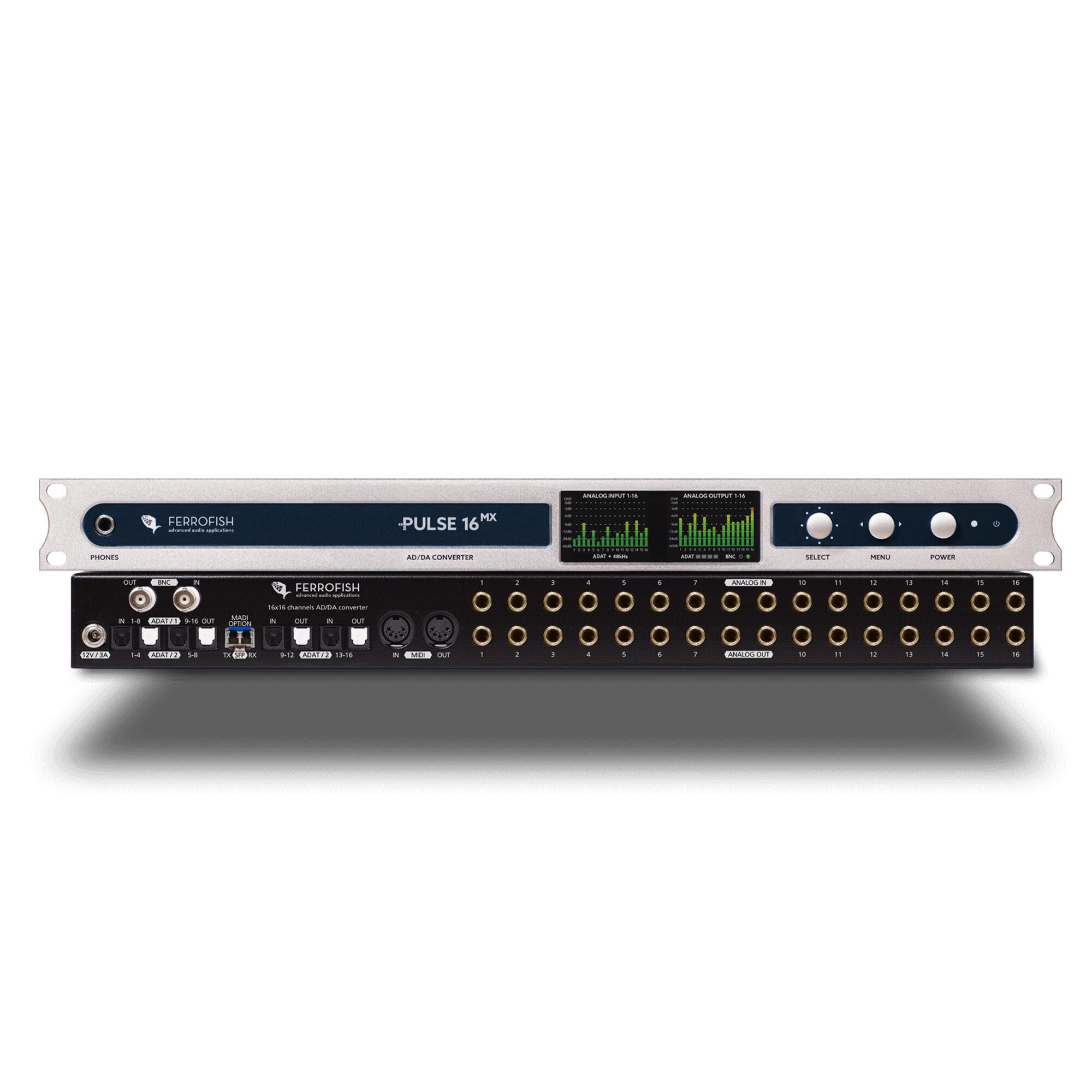 Packed in a just 1HU, this highly integrated converter has 16 x 16 balanced analog TRS sockets using studio levels up to +20dBu – individually adjustable in 1dB steps. The Low Latency converters, accompanied with a temperature-compensated clock and jitter reduction PLL, guarantees best crystal clear sound.